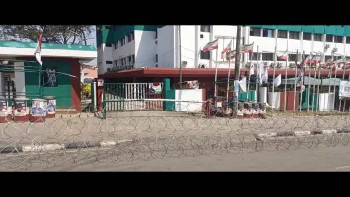 Reporters who visited the party secretariat, observed that large coils of razor wire were strategically deployed outside the access road by the building’s perimeter fence, blocking the main gates and halting all administrative and political activities at the facility.