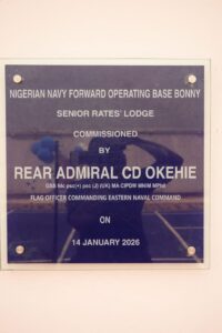 Commissioning the new building on Wednesday, January 14, 2026 in Bonny, Rivers State, Rear Admiral Okehie commended the Commanding Officer of FOB Bonny, Commodore Emmanuel Fingesi, who he said has set a new standard for infrastructure development.